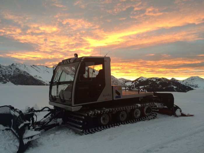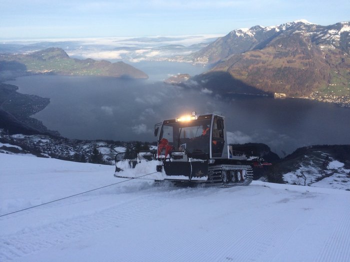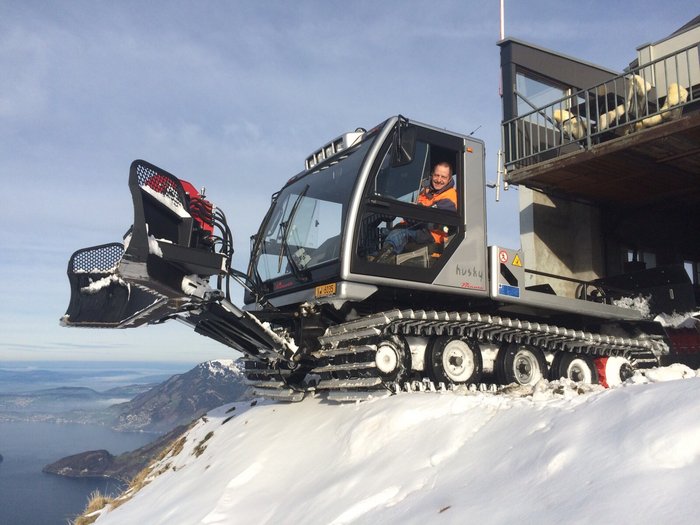 Die Luftseilbahn Niederbauen AG grüsst mit einem neuen Pistenfahrzeug Prinoth Husky mit aufgebauter Seilwinde für steiles Gelände.