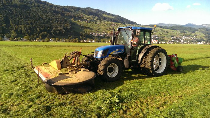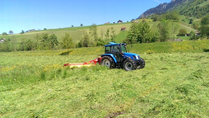 New Holland T4040 mit Frontmähwerk VICON CM 271FP und Aufbereiter AGRAR Sprinter