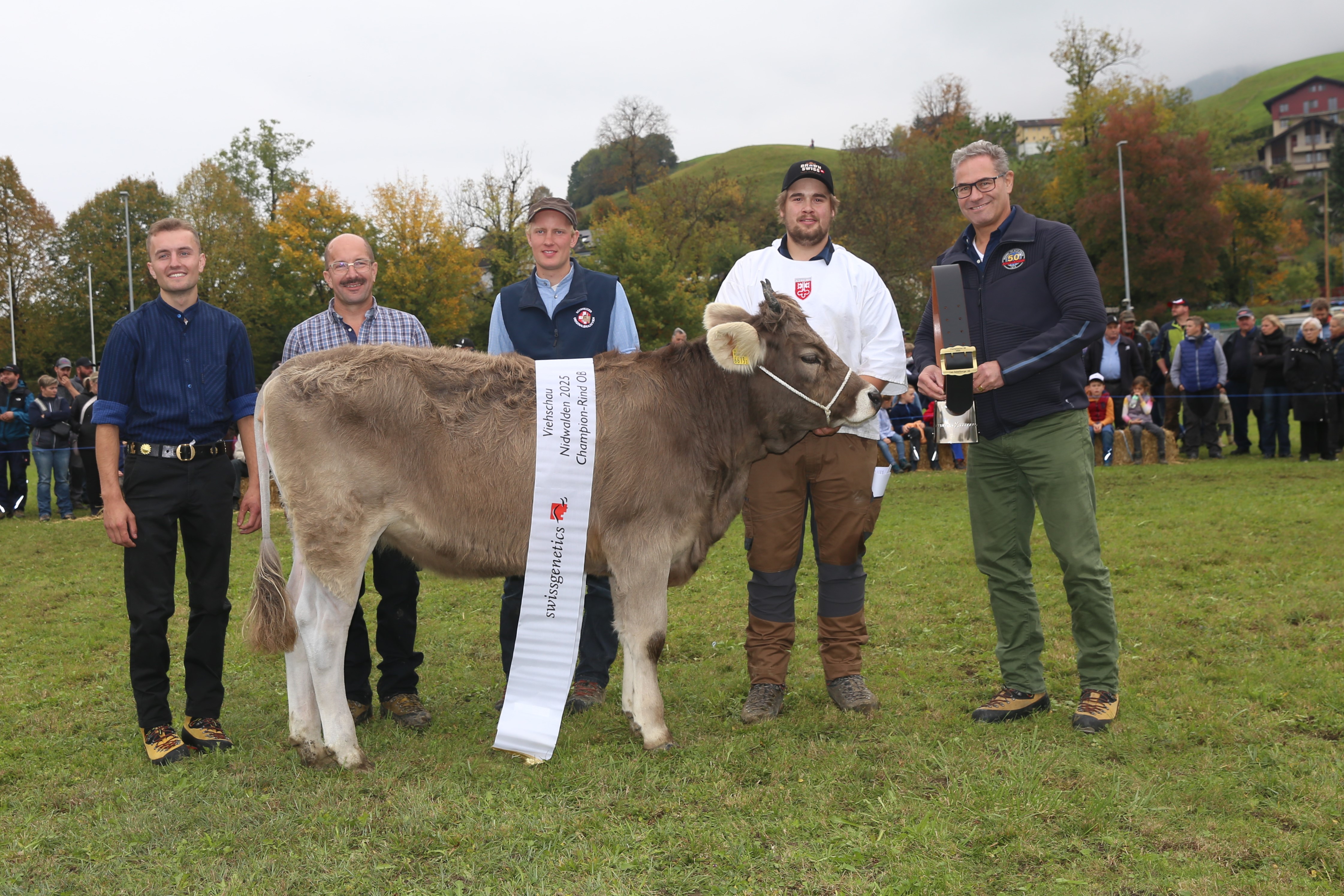 Bild 1: Sieger Champion Rind Brown Swiss 2025: Z'Rotz Beat und Familie